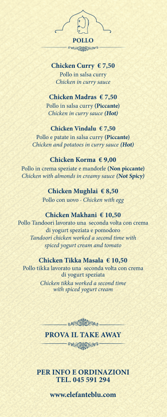 A Verona l’Elefante Blu è il ristorante dove provare la tradizionale cucina indiana e ceylonese.